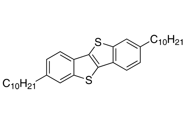 BTBT化合物具有兩個(gè)苯環(huán)和一個(gè)噻吩環(huán)的結(jié)構(gòu),屬于二苯并二苯稠合梯型π-共軛化合物。其化學(xué)結(jié)構(gòu)使其在電子傳導(dǎo)方面表現(xiàn)出優(yōu)異的性能,具有高電子遷移率和良好的熱穩(wěn)定性。BTBT的HOMO能級(jí)較低(約-5.88 eV),這使得基于BTBT的有機(jī)薄膜晶體管(OTFTs)器件具有較大的閾值電壓。