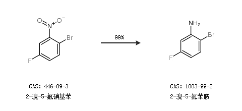 1.通過2-溴-5-氟硝基苯合成2-溴-5-氟苯胺,收率約99%;