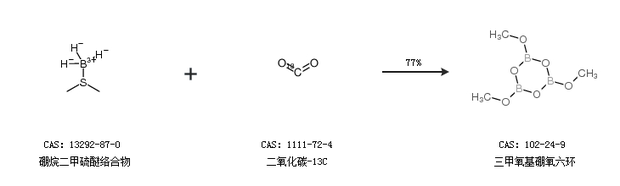 1.通過硼烷二甲硫醚絡合物和二氧化碳-13C合成三甲氧基硼氧六環(huán),收率約77%;