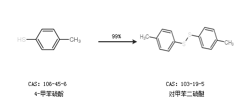 2.通過4-甲苯硫酚合成對甲苯二硫醚,收率約99%;
