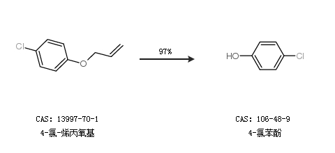 1.通過(guò)4-氯-烯丙氧基合成4-氯苯酚,收率約97%;