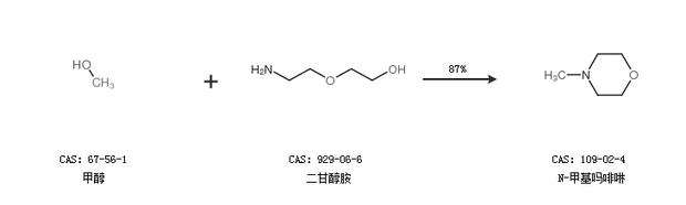 2.通過甲醇和二甘醇胺合成N-甲基嗎啡啉,收率約87%;