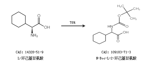 2.通過(guò)L-環(huán)己基甘氨酸合成N-Boc-L-2-環(huán)己基甘氨酸,收率約78%;
