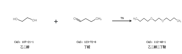 2.通過(guò)乙二醇和丁醛合成乙二醇二丁醚,收率約7%;