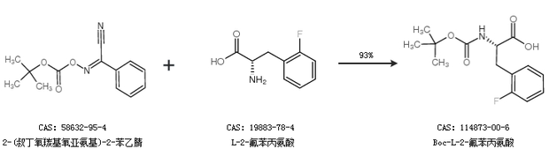 2.通過2-(叔丁氧羰基氧亞氨基)-2-苯乙腈和L-2-氟苯丙氨酸合成Boc-L-2-氟苯丙氨酸,收率約93%;