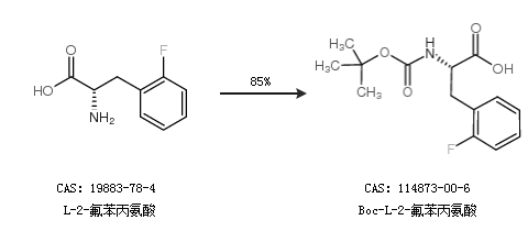 1.通過L-2-氟苯丙氨酸合成Boc-L-2-氟苯丙氨酸,收率約85%;