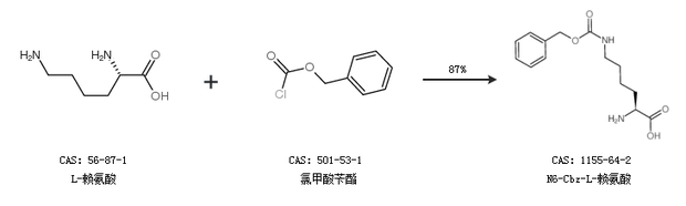 1.通過(guò)L-賴氨酸和氯甲酸芐酯合成N6-Cbz-L-賴氨酸,收率約87%;