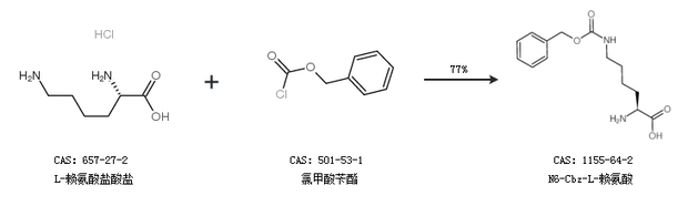 2.通過(guò)L-賴氨酸鹽酸鹽和氯甲酸芐酯合成N6-Cbz-L-賴氨酸,收率約77%;