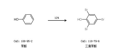 2.通過苯酚合成三溴苯酚,收率約12%;