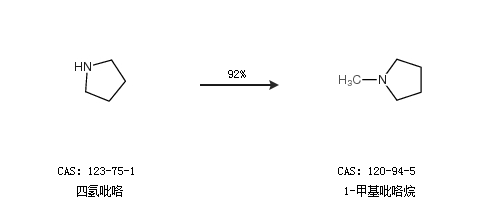 1.通過(guò)四氫吡咯合成1-甲基吡咯烷,收率約92%;