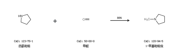 2.通過(guò)四氫吡咯和甲醛合成1-甲基吡咯烷,收率約88%;