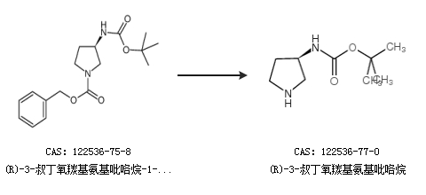1.通過(guò)(R)-3-叔丁氧羰基氨基吡咯烷-1-甲酸芐酯合成(R)-3-叔丁氧羰基氨基吡咯烷