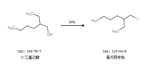 1.通過2-乙基己醇合成氯代異辛烷,收率約97%;