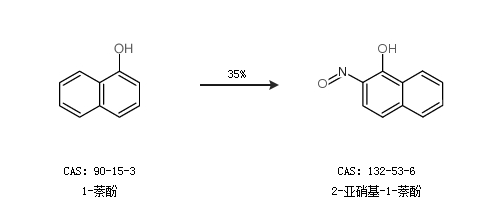2.通過1-萘酚合成2-亞硝基-1-萘酚,收率約35%;