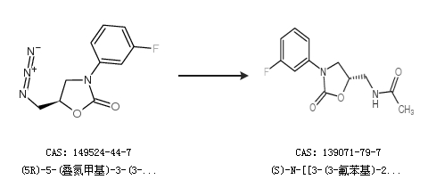 1.通過(5R)-5-(疊氮甲基)-3-(3-氟苯基)-2-惡唑烷酮合成(S)-N-[[3-(3-氟苯基)-2-氧代-5-惡唑烷基]甲基]乙酰胺