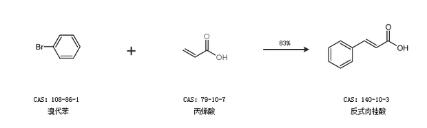 1.通過(guò)溴代苯和丙烯酸合成反式肉桂酸,收率約83%;