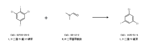 2.通過1,3-二溴-5-氟-2-碘苯和N,N-二甲基甲酰胺合成1,3-二溴-5-氟苯