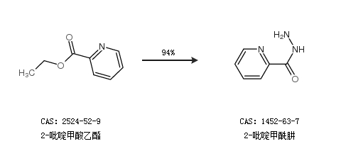 1.通過(guò)2-吡啶甲酸乙酯合成2-吡啶甲酰肼,收率約94%;
