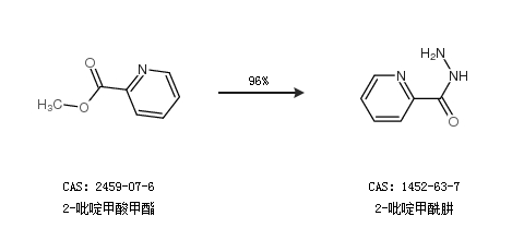 2.通過(guò)2-吡啶甲酸甲酯合成2-吡啶甲酰肼,收率約96%;