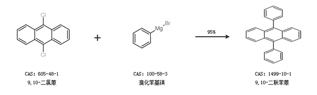 2.通過9,10-二氯蒽和溴化苯基鎂合成9,10-二聯(lián)苯蒽,收率約95%;