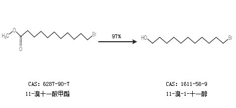 2.通過11-溴十一酸甲酯合成11-溴-1-十一醇,收率約97%;