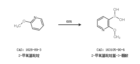 1.通過2-甲氧基吡啶合成2-甲氧基吡啶基-3-硼酸,收率約68%;