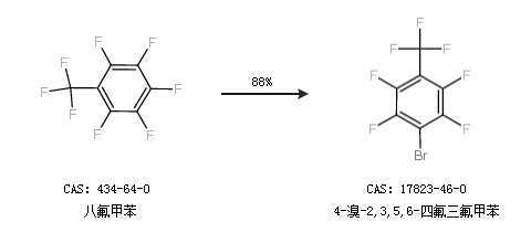 1.通過八氟甲苯合成4-溴-2,3,5,6-四氟三氟甲苯,收率約88%;
