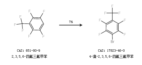 2.通過2,3,5,6-四氟三氟甲苯合成4-溴-2,3,5,6-四氟三氟甲苯,收率約7%;
