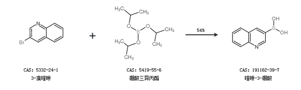 2.通過(guò)3-溴喹啉和硼酸三異丙酯合成喹啉-3-硼酸,收率約54%;