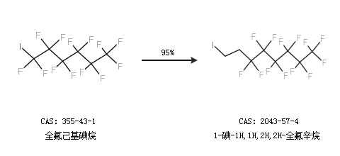 2.通過全氟己基碘烷合成1-碘-1H,1H,2H,2H-全氟辛烷,收率約95%;