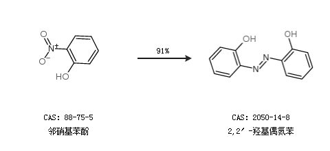 1.通過鄰硝基苯酚合成2,2′-羥基偶氮苯,收率約91%;