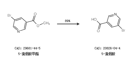 2.通過5-溴煙酸甲酯合成5-溴煙酸,收率約89%;