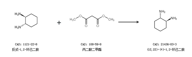 1.通過反式-1,2-環(huán)己二胺和丙二酸二甲酯合成(1S,2S)-(+)-1,2-環(huán)己二胺