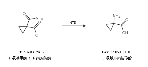 1.通過1-氨基甲酰-1-環(huán)丙烷羧酸合成1-氨基環(huán)丙烷羧酸,收率約47%;