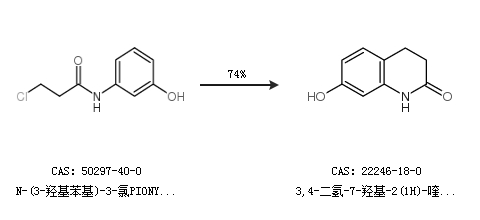 1.通過N-(3-羥基苯基)-3-氯PIONYL 胺合成3,4-二氫-7-羥基-2(1H)-喹啉酮,收率約74%;