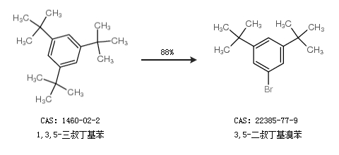 1.通過1,3,5-三叔丁基苯合成3,5-二叔丁基溴苯,收率約88%;