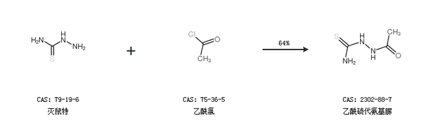 2.通過(guò)乙酸和滅鼠特合成乙酰硫代氨基脲,收率約72%;