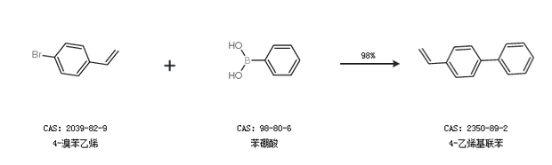 1.通過4-溴苯乙烯和苯硼酸合成4-乙烯基聯(lián)苯,收率約98%;
