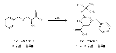 2.通過(guò)O-芐基-L-絲氨酸合成N-Boc-O-芐基-L-絲氨酸,收率約93%;