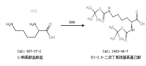 1.通過L-賴氨酸合成(S)-2,6-二叔丁氧羰基氨基己酸,收率約98%;