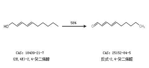 1.通過(2E,4E)-2,4-癸二烯醇合成反式-2,4-癸二烯醛,收率約58%;