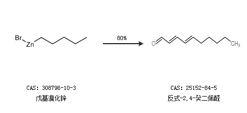 2.通過戊基溴化鋅合成反式-2,4-癸二烯醛,收率約80%;