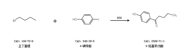 2.通過正丁基鋰和4-碘苯酚合成4-羥基苯戊酮,收率約65%;