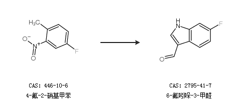 2.通過4-氟-2-硝基甲苯合成6-氟吲哚-3-甲醛