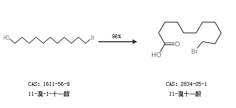 2.通過11-溴-1-十一醇合成11-溴十一酸,收率約96%;