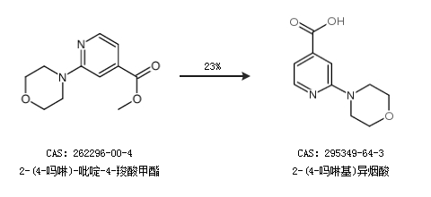 2.通過(guò)2-(4-嗎啉)-吡啶-4-羧酸甲酯合成2-(4-嗎啉基)異煙酸,收率約23%;