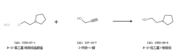 2.通過N-(2-氯乙基)吡咯烷鹽酸鹽和2-丙炔-1-醇合成N-(2-羥乙基)-吡咯烷