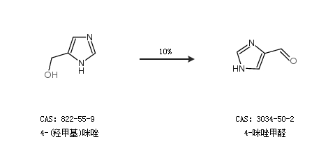 2.通過4(5)-羥甲基咪唑鹽酸鹽合成4-咪唑甲醛,收率約78%;