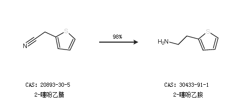 1.通過2-噻吩乙腈合成2-噻吩乙胺,收率約98%;