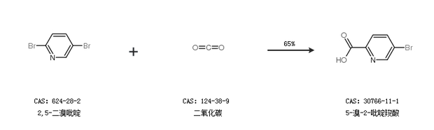 1.通過2,5-二溴吡啶和二氧化碳合成5-溴-2-吡啶羧酸,收率約65%;